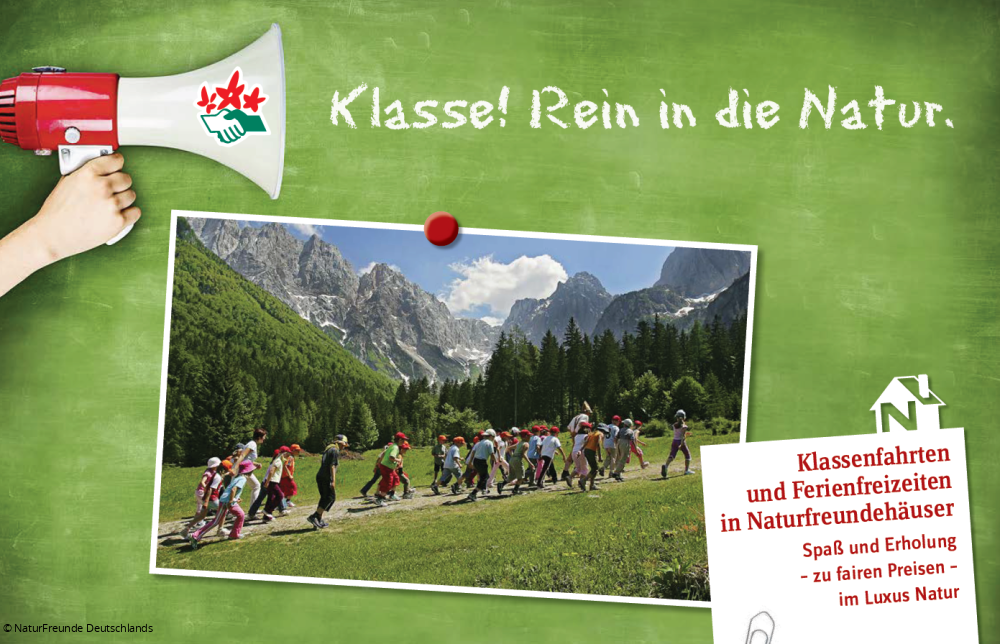 Von der Kita bis zur weiterführenden Schule ist für jedes Alter etwas dabei. Bei den Klassenfahrten und Ferienfreizeit-Angeboten liegt der Fokus auf Naturerlebnissen, Bewegung im Freien, einem sozialen Miteinander und einer gesunden Ernährung. Bei rund 400 Naturfreundehäusern in Deutschland reicht die Vielfalt von der einfachen Berghütte mit Etagendusche bis zur komfortablen Unterkunft, von Häusern mit 20 bis zu 180 Betten, von Selbstversorgung bis zur gesunden Vollverpflegung.