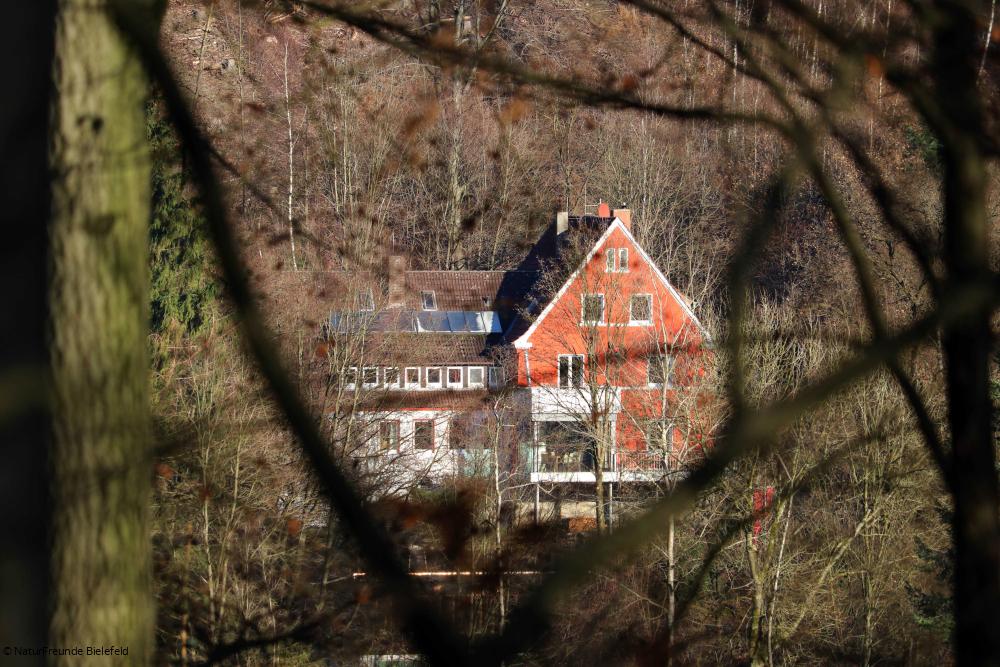 Ab Hbf. Bielefeld mit Stadtbahn 2 nach Sieker, weiter mit Bus Linie 34 nach Oerlinghausen zum Kastanienkrug. Auf dem Welschenweg in ca. 30 min. zum Naturfreundehaus.