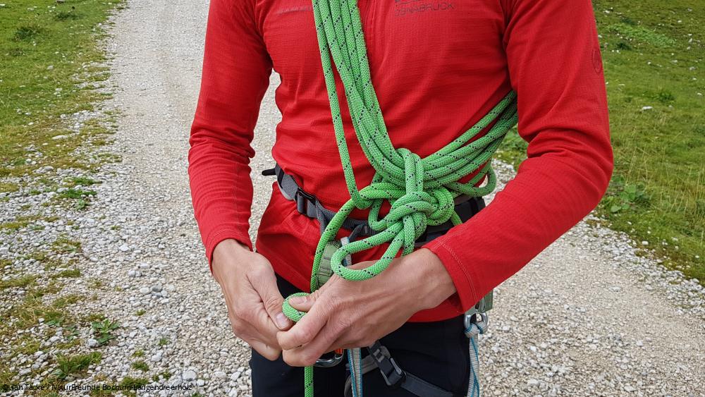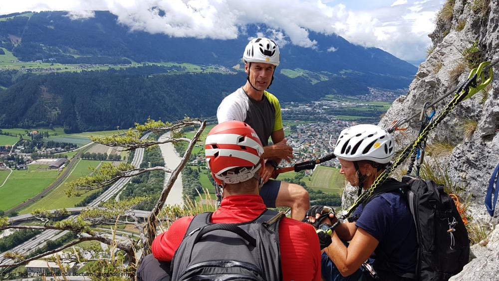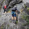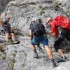 Wenn Gruppen auf schwierigen Klettersteigen unterwegs sind, jemand Probleme bekommt und nicht mehr weiter kann, wird es schon anspruchsvoll. Alle hängen ja hintereinander im gleichen Drahtseil. Aber mit den erlernten Techniken funktioniert eine Rettung dann auch. Kurz gesagt: Mit der Qualifikation Trainer B – Klettersteig kannst du Gruppen auch durch schwierige Klettersteigen sicher führen.