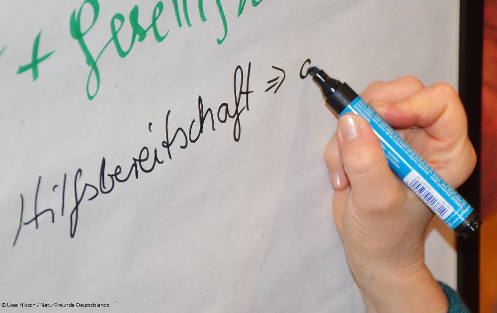 In der ersten Arbeitsgruppe wurde über konkrete Möglichkeiten der Mitgestaltung der NaturFreunde an einer sozial-ökologischen Transformation debattiert. Geäußert wurde zum Beispiel die Idee, abstrakte Themen wie die Energiewende über die Auseinandersetzung mit regionalen Beispielen wie der Braunkohleförderung in der Lausitz anzugehen. Auch die Verknüpfung politischer Inhalte mit dem Natursport, beispielsweise über thematische Wanderungen und die Integration von Bildung für nachhaltige Entwicklung in die Natursport-Ausbildungen wurden vorgeschlagen. Hürden und Lösungsansätze für die Umsetzung dieser Ideen wurden diskutiert. Auch wurde darauf hingewiesen, dass es von der Bundesebene bereits thematische Angebote in Form von Argumentationspapieren gibt und weitere zu Themen wie der EU-Afrika-Politik oder der EU-Agrarpolitik folgen werden.
