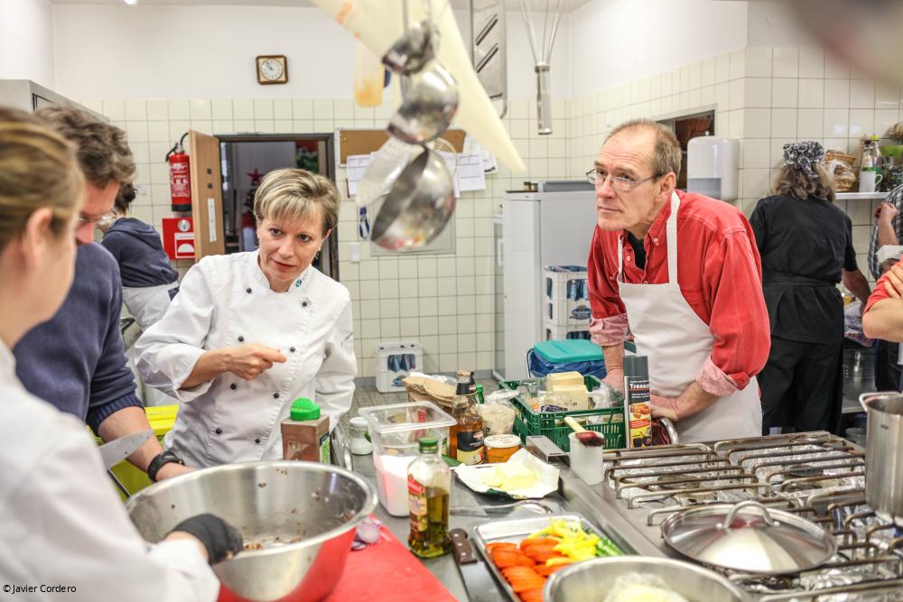 Die Schulungsköchin Marketa Schellenberg lehrte an zwei Tagen, vom 30.11. - 1.12.2015, die Grundlagen der veganen Küche. Kurze Theorie-Workshops gaben Einblick in die Entwicklung der veganen Küche, Warenkunde und Einkauf sowie Speiseplanzusammenstellung. Im Vordergrund stand natürlich der Praxisteil: Die Teilnehmer haben gemeinsam veganes Frühstück, Mittagessen und Abendessen zubereitet.