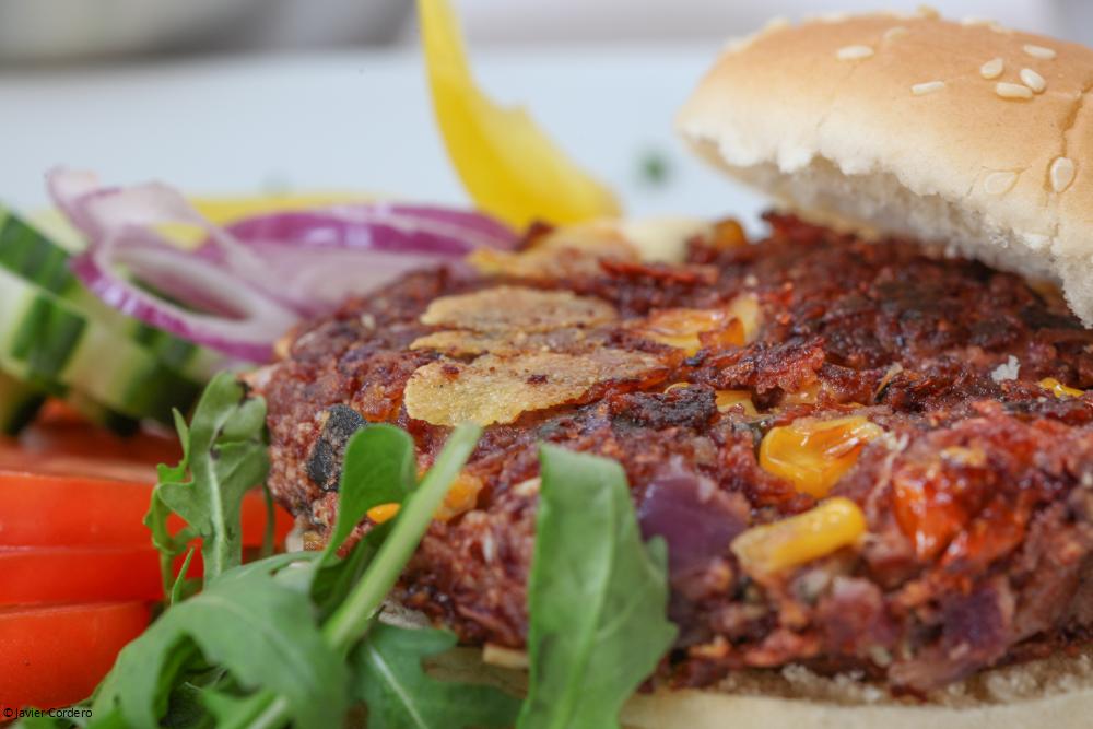 Nach ersten Erklärungen zu veganen Produkten und Alternativen hieß es für die zwölf Teilnehmer „ran an die Töpfe“. Eingeteilt in kleine Gruppen und ausgestattet mit den veganen Rezepten wurde mit der Zubereitung der jeweiligen Gerichte begonnen, wie beispielsweise gefüllte Paprika mit Joghurtdip, Kesselgulasch mit Sojafleisch, Chiliburger oder Wraps mit Quinoafüllung – alles selbstverständlich vegan.