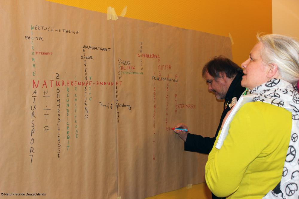 Der BA ist das höchste Entscheidungsgremium zwischen den Bundeskongressen. Eigentlich gibt es für dieses Gremium eine feste Besetzung: Bundesvorstand, Vertreter_innen der Landesverbände und der Bundesleitung der Naturfreundejugend. Dieses Mal fand der BA jedoch in ganz neuer Form statt: Als Zukunftswerkstatt mit acht Ortsgruppen, die die reguläre Besetzung ergänzten. Im Mittelpunkt der zwei Tage stand eine Frage: Wie wollen und können wir NaturFreunde unsere Zukunft gestalten?